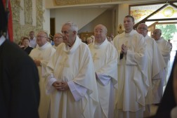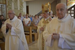 Z tej okazji uroczystej sumie przewodniczył Biskup Kielecki Jan Piotrowski. Na początku liturgii zgromadzonych wiernych i kapłanów powitał proboszcz, ksiądz Andrzej Jankoski. Następnie biskup Piotrowski odsłonił dwa nowe elementy wystroju świątyni, w których umieszczone zostały fundamentalne symbole tożsamości wspólnoty parafialnej.