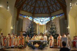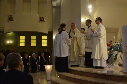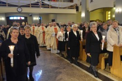 Najświętszej Ofierze w tej wspólnocie parafialnej przewodniczył kielecki biskup diecezjalny, a koncelebrowali ją licznie przybyli księża. W kościele zgromadzili się parafianie oraz rodziny i znajomi ośmiu wdów, które postanowiły wybrać drogę życia konsekrowanego. Homilię wygłosił biskup Jan Piotrowski, który przypomniał zebranym na uroczystości jaka jest istota świętości. – Drogą do świadectwa wiary jest świętość, a ona jak pisał w adhortacji „Cieszcie się i radujcie” Ojciec Święty Franciszek, jest najpiękniejszą twarzą Kościoła. Świętość – moja, twoja, wasza, każdego z nas. Nie ma innego Kościoła. Nie ma Kościoła biskupa Piotrowskiego, nie ma Kościoła dziekana Czarnoty. Nie, mój Kościół i on jest taki jaki ja jestem w moim życiu, w całości mojego życia. Świętość nie jest jakimś ekskluzywny towarem i przywilejem, ale jest drogą każdego chrześcijanina. Świętość nie jest romantyczną ekstazą. Musi wyrastać z miłości oszlifowanej regularną modlitwą, postem, pokutą i łaską sakramentów świętych. Nie lęka się też ofiary i cierpienia. Jest wyzwaniem dla wszystkich ochrzczonych – tłumaczył biskup kielecki. – Dziś jesteśmy świadkami tego, że nasze drogie panie, wdowy naszej diecezji, kiedyś żony, ale nadal matki i babcie, szukają dobrowolnie drogi świętości. Przez konsekrację i całkowite wolne poświęcenie się Chrystusowi pragną żyć dla Niego we wspólnocie Kościoła w codzienności swojego życia. Konsekracja jest aktem żyjącego Kościoła w mocy Ducha Świętego – zauważył biskup Jan Piotrowski.