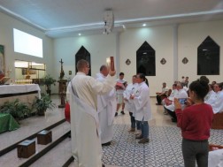 Uroczyste powitanie miało miejsce podczas Mszy Świętej w miejscowej parafii. Przekazano wówczas wspólnocie małe monstrancje, jako dar od wiernych diecezji kieleckiej, do wszystkich 18 kaplic, szaty liturgiczne oraz bieliznę kielichową. Klerycy udali się także do szkół znajdujących się na terenie parafii.