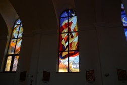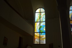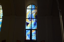 - W centrum, w rozecie jest modlitwa świętego Franciszka przy krzyżu San Damiano. Owocem tej modlitwy są pozostałe witraże, czyli pochwała stworzeń. Pokazują one w sposób symboliczny dzieło stworzenia, które święty Franciszek opisał w Pieśni Słonecznej. Na każdym jest także fragment tej modlitwy, pełnej uwielbienia i wdzięczności. Po kolei są to: słońce, ogień, księżyc i gwiazdy, ziemia i woda – mówi ojciec Marek Skwarło.