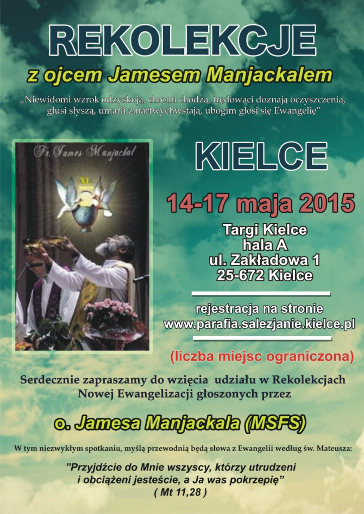 Przed nami rekolekcje, które poprowadzi ojciec James Manjackal, po raz pierwszy goszczący w naszym mieście. Spotkania zaplanowane są na 14 – 17 maja w jednej z hal Targów Kielce.