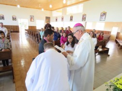 Ksiądz Piotr pracuje w Brazylii od pięciu lat, a od czterech lat jest w parafii Niepokalanego Serca Najświętszej Marii Panny w Marquinho w diecezji Guarapuava. Diecezja liczy zaledwie kilkadziesiąt lat, ale jest dobrze zorganizowana. Nasz misjonarz przejął placówkę po księdzu brazylijskim. W wymiarze duszpasterskim i gospodarczym swą gorliwością i pracą musiał zaprosić wiernych do modlitwy, życia sakramentalnego i odpowiedzialności za parafię. Udało mu się pokonać granicę nieufności i dziś jest w bardzo dobrych relacjach z wiernymi. Z podziwem patrzyłem na grupę liturgiczną animującą Eucharystię, na szafarzy komunii świętej oraz nauczycieli katechizmu. W tej parafii są ludzie o różnej kondycji duchowej, ale przyjmują wiarę i chcą iść drogą Bożych przykazań. Miasteczko gdzie pracuje ksiądz Piotr nie jest duże, liczy około dwóch tysięcy ludzi, ale parafia to przestrzeń, na której jest 18 kaplic. Są one ładnie wybudowane i wykończone. Widać w nich ślad ofiarności wiernych diecezji kieleckiej. Ksiądz Piotr upamiętnia to, co powstało z ofiar naszych wiernych, jest to na przykład kaplica, tabernakulum, czy dzwon, który teraz poświęciłem.