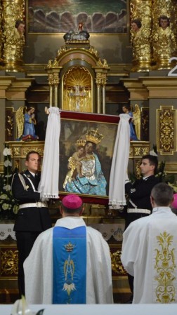 W czasie Mszy św. prymas poświęcił "szatę dla Maryi" będącą wotum wdzięczności parafian, pielgrzymów i mieszkańców dekanatu piekoszowskiego za Złoty Jubileusz Koronacji obrazu Matki Bożej Miłosierdzia. W słowach homilii arcybiskup Wojciech Polak zwracał szczególną uwagę na to, czego uczy nas postawa całkowitego oddania się Bożemu miłosierdziu pokazywana nam przez Maryję. – Kobieta, w której życiu wszystko zostało ukształtowane i przeniknięte obecnością miłosierdzia, które stało się ciałem nie przestaje nam powtarzać: Chodźcie, zbliżcie się z ufnością. Przyjdźcie, a otrzymacie dar miłosierdzia. Nie bójcie się, nie lękajcie, nie wstydźcie się. Ojciec czeka na was z otwartymi ramionami, aby wam przebaczyć, aby przyjąć do swego domu, aby okazać nam swoje miłosierdzie – mówił w homilii.