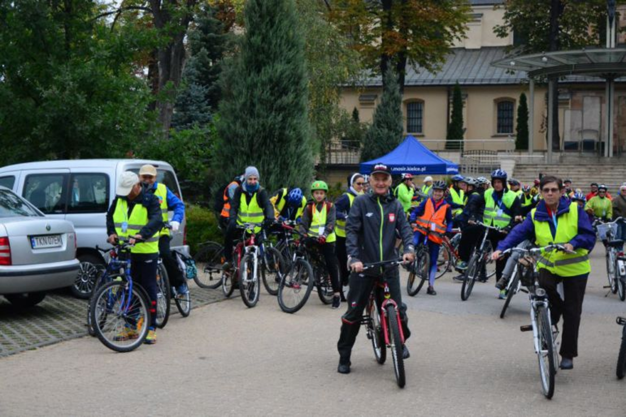 Ponad sto osób wyruszyło z Placu św. Jana Pawła II w IV Pielgrzymkę Rowerową na Święty Krzyż. Tradycyjnie przewodniczy jej ksiądz biskup Marian Florczyk.