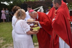 Eucharystia została odprawiona przed nowym kościołem parafialnym. Uroczystościom przewodniczył Pasterz naszej diecezji, który w swojej homilii zwrócił uwagę na trud budowy świątyni, dzisiejszą Uroczystość Świętych Piotra i Pawła oraz na wartość wiary i nadziei.