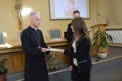 Podczas wręczenia stypendiów został wyświetlony fabularyzowany dokument poświęcony biskupowi Czesławowi Kaczmarkowi. – Pewnie młodzież nie zna idei bp. Kaczmarka, bo wszystko się robi, żeby nie wrócić do prawdy o nim. A był on patriotą. Przyszedł do Kielc z Płocka, jako człowiek wykształcony, mający doświadczenia z Zachodu, gdzie studiował. Bp. Kaczmarek był biskupem w tym szczególnie trudnym okresie dla Polski, okresie II wojny światowej. Przyjmował tutaj księży z innych diecezji by mogli tutaj jakoś pracować. Troszczył się również o kleryków, a było to bardzo trudne. Jego ideą było to, że żeby społeczeństwo mogło się dobrze rozwijać, musi być po prostu mądre – podkreślał na spotkaniu z młodzieżą bp. Marian Florczyk.