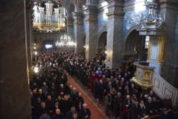 – Modlimy się o spokój duszy profesora Jacka Semaniaka, aby Bóg, który jest odwieczną miłością, przyjął tego serdecznie dobrego człowieka do swojej chwały, tam w domu Ojca, gdzie jest mieszkań wiele(…). Stanowimy – nie tylko akademicki – senat wdzięczności i długu miłości dla zmarłego To miejsce zawdzięcza mu faksymile Antyfonarza Kolegiaty Kieleckiej z 1372 roku, gdzie zawarty jest ten przepiękny hymn śpiewany na rozpoczęcie każdego roku akademickiego „Gaude Mater Polonia”. Osobiście jestem dłużnikiem pana profesora za jego serdeczność, życzliwość, którą poznałem od pierwszych dni mojej pasterskiej posługi w Kielcach – mówił Biskup Kielecki Jan Piotrowski.