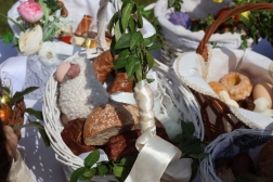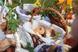 Uroczystość rozpoczęła się o godzinie 12. Wierni przynieśli koszyki z wielkanocnymi potrawami, które zostały poświęcone.