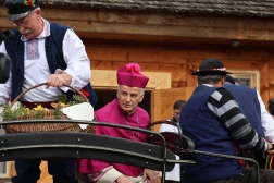 Jednym z najbardziej charakterystycznych elementów uroczystości był przyjazd biskupa bryczką. Ten symboliczny gest, nawiązujący do dawnych zwyczajów, co roku przyciąga uwagę uczestników i podkreśla tradycyjny wymiar spotkania.