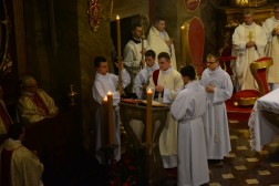 - Drodzy Bracia i Siostry! Gromadzimy się dziś w imię Jezusa Chrystusa, by sprawować Najświętszą Eucharystię w trzecią rocznicę ingresu do Katedry kieleckiej pasterza kościoła kieleckiego - biskupa Jana. Z rozmodlonym sercem przy naszym pasterzu, wraz z biskupem Marianem stoją: kapłani, osoby konsekrowane, diakoni i alumni naszego Seminarium Duchownego, siostry i bracia świeccy. Stajemy więc ożywieni duchem wiary i zjednoczeni ze swoim pasterzem słyszymy wezwanie: "Bądź wierny aż do śmierci, a dam Ci wieniec życia" - powiedział biskup nominat. Ks. dr Andrzej Kaleta wiele mówił o tym, jak bardzo potrzebna w dzisiejszych czasach jest wiara i prawdziwi świadkowie Chrystusa.