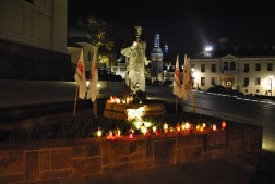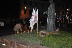 .Po mszy świętej kielczanie oraz przedstawiciele władz i związków zawodowych złożyli kwiaty pod pomnikiem patrona Solidarności na placu Najświętszej Maryi Panny.