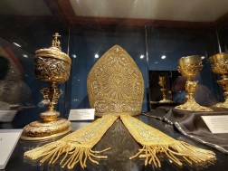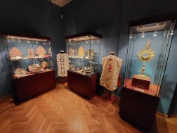Podczas zwiedzania możemy zobaczyć również szaty liturgiczne – ornaty, biskupie mitry, ale także kielichy mszalne, monstrancję, księgi i zabytkowe krucyfiksy, w tym jeden z czasów Cesarstwa Bizantyjskiego z VI wieku.