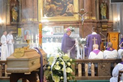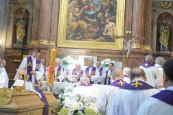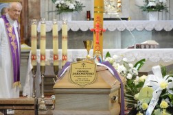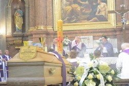 W homilii wygłoszonej przez księdza biskupa nie zabrakło wspomnień na temat zmarłego oraz refleksji dotyczących przemijania. – Zgromadziła nas tu, w kieleckim kościele św. Wojciecha, uroczystość pogrzebowa. Spodobało się bowiem Panu wszelkiego życia wezwać przed swoje oblicze robotnika z tutejszej winnicy, księdza Daniela Jarosińskiego. Chwile takie jak ta napełniają nas powagą. Stajemy bowiem wobec jednej z najbardziej podstawowych tajemnic ludzkiego życia. Stajemy wobec tajemnicy śmierci. W takiej chwili jak ta pytamy o jej sens – mówił ksiądz biskup, który zacytował również fragment testamentu śp. ks. Daniela Jarosińskiego. "Składam serdeczne dzięki wszystkim, którzy mi pomogli w drodze do celu, gdzie wszystko ma swój ład i sens, gdzie nie ma żadnych sprzeczności i złudzeń, gdzie duch nie walczy z oporem materii, gdzie nie istnieje szukanie i lęk. Jeśli kogokolwiek w jakikolwiek sposób skrzywdziłem, czy zraniłem przepraszam pokornie z całego serca i proszę o wybaczenie. Pokój Boży i Jego miłość niech będą z nami. Błogosławię wszystkich i o modlitwę proszę. Do zobaczenia w ojczyźnie dobrej i świętej, w domu naszego Ojca. Czyńcie chwałę i błogosławieństwo Pana i składajcie mu dzięki, i służcie mu z wielką pokorą" napisał ksiądz Jarosiński.