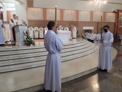 Podobnie, jak w ubiegłym roku, ze względu na sytuację epidemiczną święcenia odbyły się w największym kościele diecezji kieleckiej. Mszy świętej przewodniczył biskup kielecki Jan Piotrowski, który również wygłosił homilię. Zwrócił w niej uwagę na to, że święcenia kapłańskie są wielkim darem Bożej miłości i że nie byłoby ich, gdyby nie przykład wiary w rodzinach neoprezbiterów.