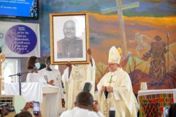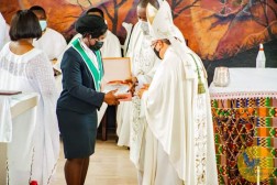 „Z przyczyn oczywistych była to bardzo uroczysta Msza św. Liturgia zaczęła się już w bramie placu kościelnego. Moje zdumienie zaczęło się, gdy wysiadłem z samochodu i nad wejściem do kościoła zobaczyłem olbrzymi baner z moim zdjęciem, informujący o dzisiejszej uroczystości. Miejscowy proboszcz przywitał mnie w tradycyjnym stroju ganejskim, który przypominał trochę rzymską togę, tyle że strój ten był bardziej kolorowy", pisze.