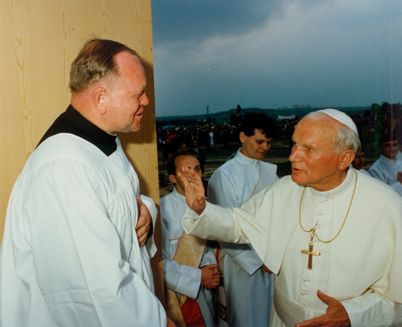 Ojcu Świętemu podobał się prosty, symboliczny ołtarz. Później nam podziękował, że czuł się tutaj w sercu Gór Świętokrzyskich. Na koniec przytulił mnie w zakrystii i powiedział: Nie martw się. Kościół kielecki zmókł, ale Papież nie zmókł. Zawsze wzruszam się, kiedy wspominam bł. Jana Pawła II.