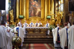 Eucharystia rozpoczęła się procesją z Domu Biskupiego do katedry. Prowadziła ją Orkiestra Ochotniczej Straży Pożarnej z Krasocina.
