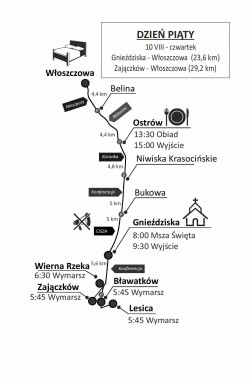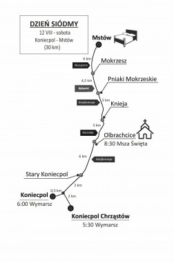– Siódmego sierpnia wierni dotrą do Morawicy oraz Dębskiej Woli. Trzeciego dnia grupy połączą się w Morawicy i wspólnie wejdą do Kielc. Msza w kieleckiej katedrze planowana jest na godzinę 15:30. Ze stolicy województwa świętokrzyskiego pielgrzymka ruszy dzień później, o godzinie 6 rano i tego dnia dojdzie do Zajączkowa. 10 sierpnia pątnicy zatrzymają się we Włoszczowie. Ze względu na roboty drogowe zmieniła się trasa, którą szóstego dnia dojdziemy do Koniecpola. 12 sierpnia ostatni nocleg tradycyjnie odbędzie się na polu namiotowym w Mstowie. Tego dnia pielgrzymi uczestniczyć będą w nabożeństwie na Przeprośnej Górce, po którym wejdą na Jasną Górę – opowiada ksiądz Hubert Równicki, z grupy medialnej KPP.