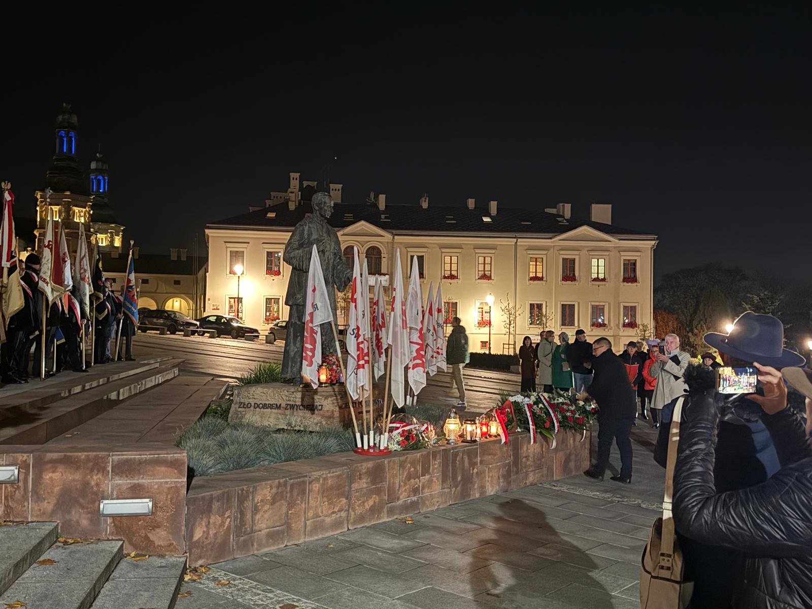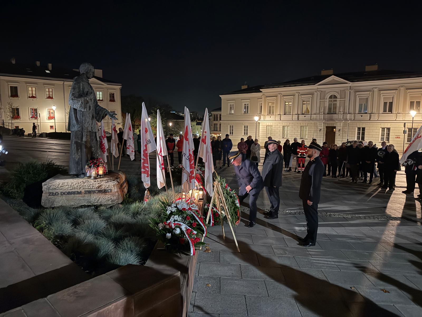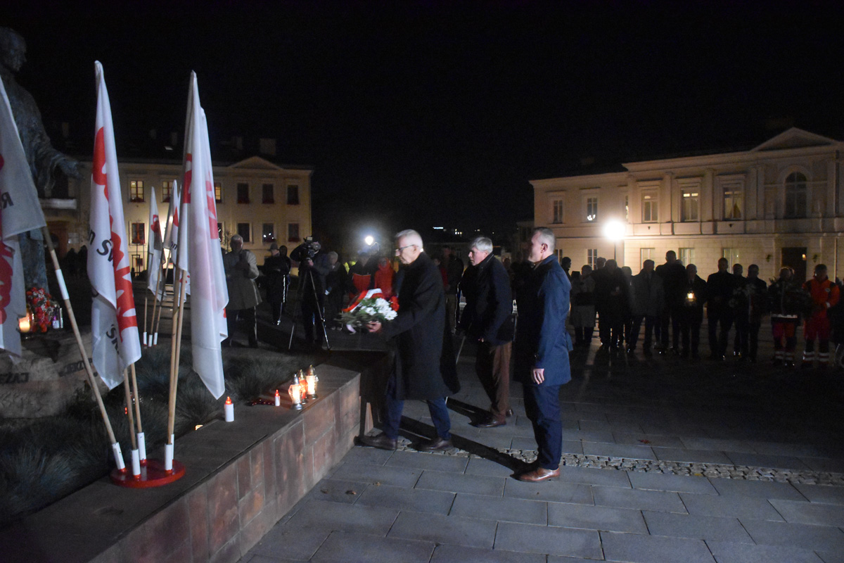 Po Mszy Świętej, przed pomnikiem błogosławionego na placu Najświętszej Maryi Panny, przedstawiciele „Solidarności” oraz parlamentarzyści złożyli wiązanki kwiatów i zapalili znicze.