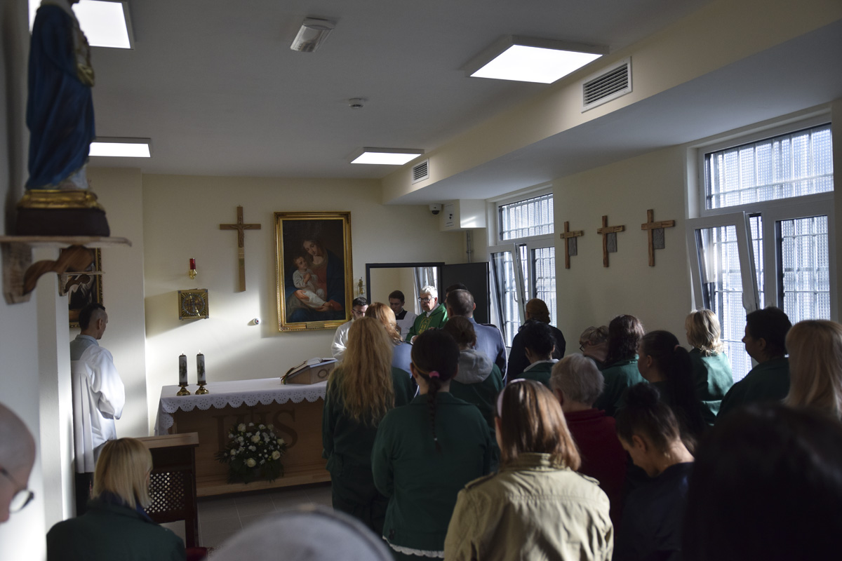 W uroczystej Mszy Świętej uczestniczyło kilkadziesiąt osadzonych kobiet. Obecna była także dyrekcja placówki przy ulicy Zagnańskiej.