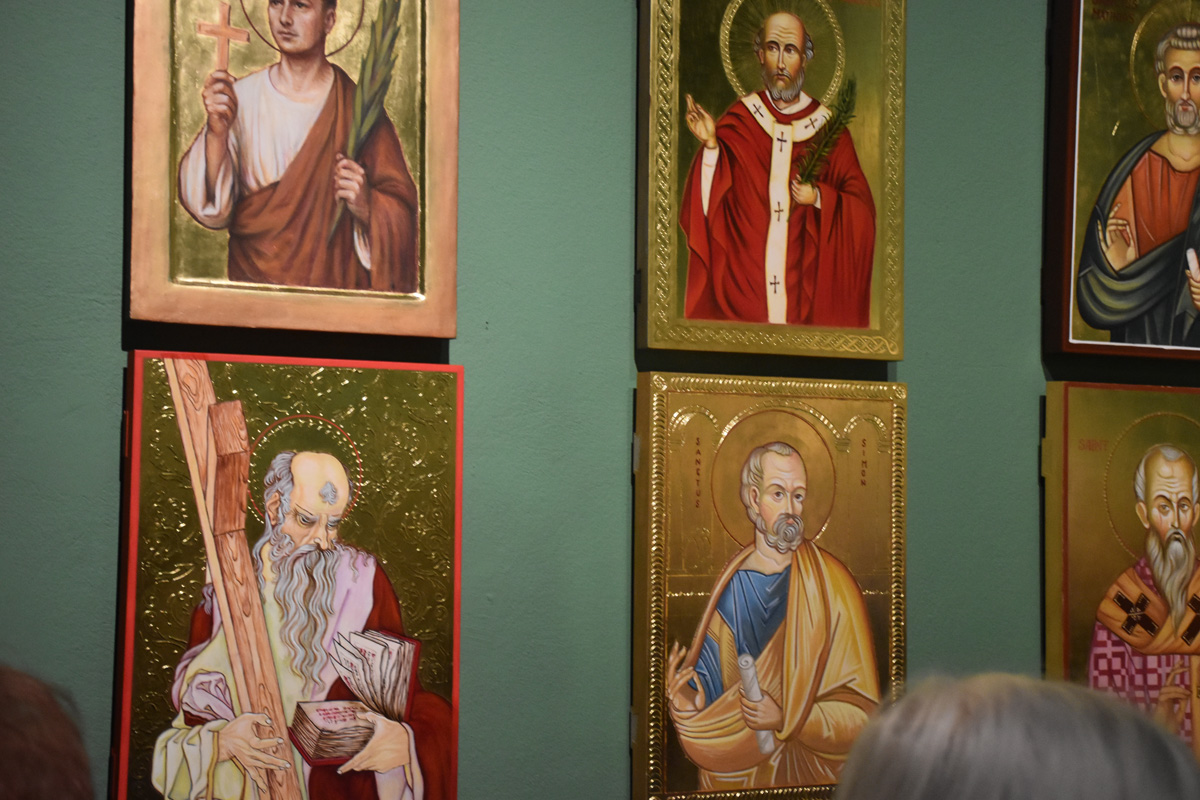 – To święci, o których mało kto już dzisiaj pamięta. Na przykład wizerunki świętego Anakleta czy Kleta, Linusa, Kosmy i Damiana. Są to wizerunki tych świętych, których wymieniamy w pierwszej modlitwie eucharystycznej. Ta modlitwa niestety jest dość rzadko używana podczas liturgii, a nawet jeśli jest używana, to niektórzy święci są pomijani. Ich imiona znajdują się w nawiasie, dlatego można je pominąć. Natomiast na naszej wystawie prezentujemy wszystkich 38 świętych, można nie tylko usłyszeć ich imiona, ale również zobaczyć ich twarze, a czasem wydarzenia z nimi związane – dodaje ksiądz Paweł Tkaczyk.