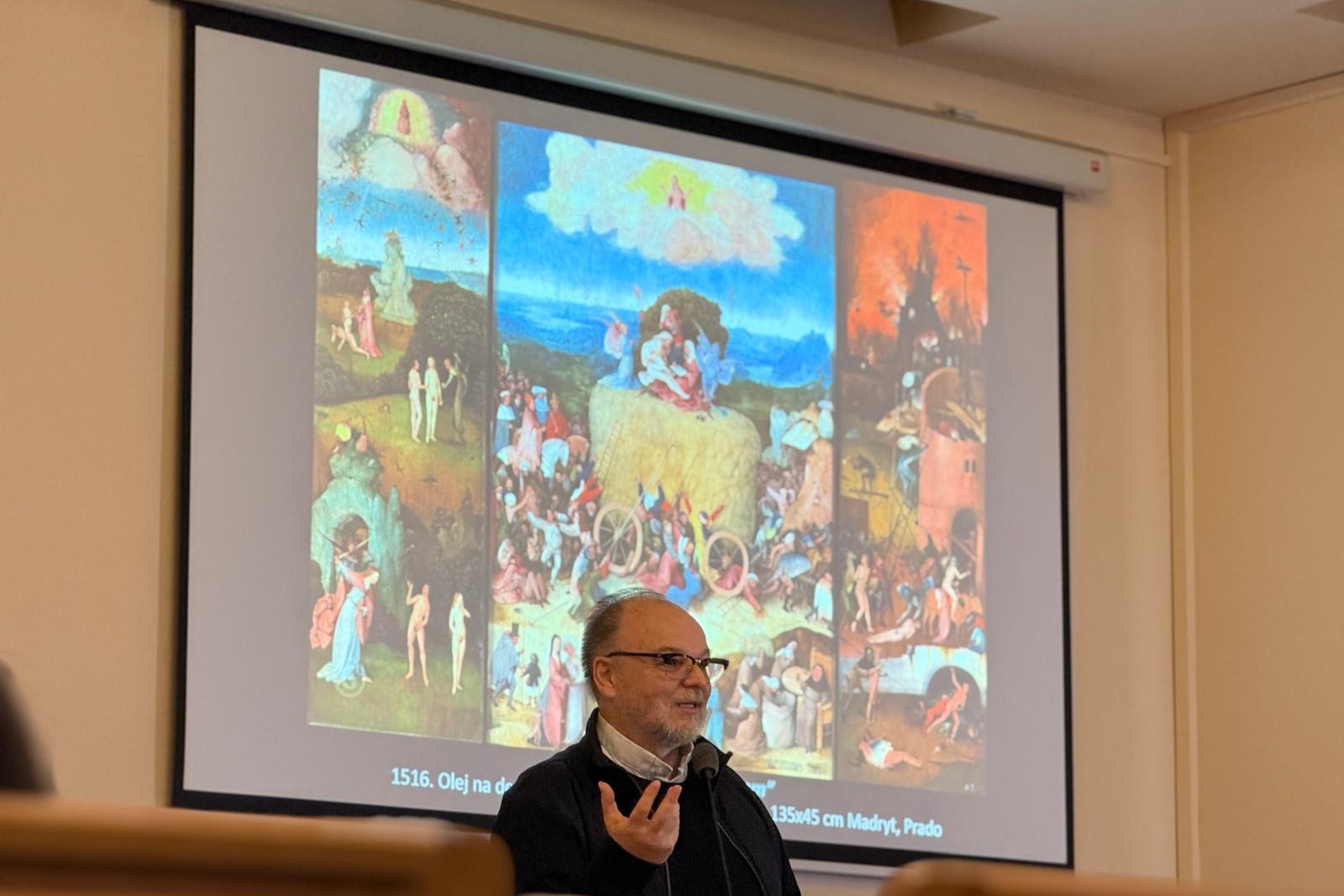 O znaczeniu i symbolice tryptyku „Wóz z sianem” autorstwa Hieronima Boscha mówił o. Eugeniusz Grzywacz – pijar, historyk sztuki i kulturoznawca. W jego ocenie obraz przedstawia kompleksowe ujęcie życia człowieka.
