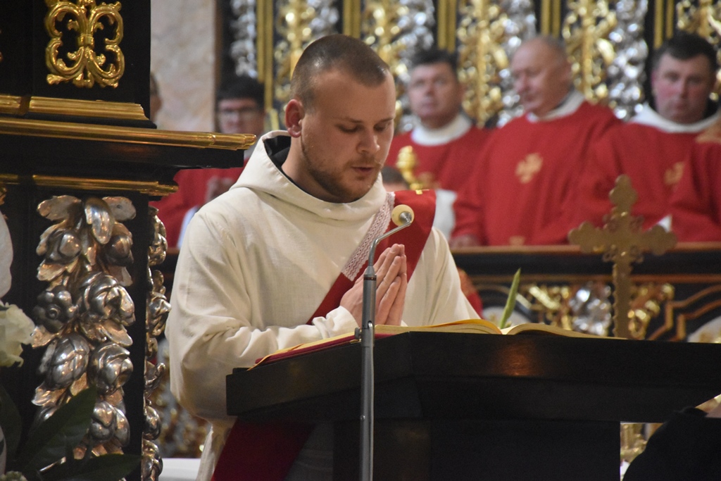 – Jesteśmy z tobą, Konradzie i otaczamy cię naszą serdeczną i ciepłą modlitwą(…). Kiedy otrzymasz święcenia prezbiteratu, upodobnisz się do Chrystusa. Często powtarzano nam te słowa: Kapłan to alter Chrystus, to drugi Chrystus. Upodobnisz się więc do Chrystusa, Kapłana i Pasterza, aby głosić ewangelię i oddawać cześć Bogu, który jest miłością. Będziesz to czynił przede wszystkim przez składanie Najświętszej Ofiary. Bądź gorliwym szafarzem sakramentów świętych, a głoszenie Ewangelii, które zawsze zwiastuje wiosnę duchowej odnowy, niech będzie pokarmem dla wiernych. odzienna świętość twojego życia, a w nim modlitwa osobista i wspólnotowa, zakonne liturgia godzin oraz rady ewangeliczne, czystości, ubóstwa i posłuszeństwa, a także miłość i pokora niech będą źródłem twojej radości– tłumaczył Biskup Kielecki.