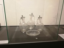 Co można było zobaczyć? Na przykład pochodzący z lat 1720-1730 kielich flet zdobiony trzema sercami; kielich kulawka przyozdobiony herbami Polski, Litwy i Wettinów, którego powstanie datowane jest na połowę XVIII wieku; karafkę z herbami Prus i Dołęga, pochodzącą z lat 50. XVIII wieku.