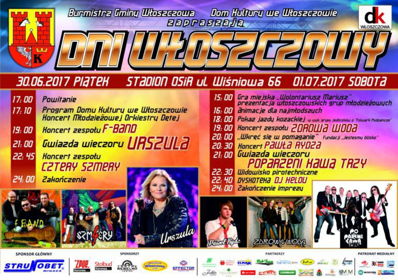 Jak co roku u progu wakacji Włoszczowa obchodzi swoje dni. W tym roku, na stadionie przy ul. Wiśniowej zaplanowano dwa dni pełne muzyki i dobrej zabawy. Patronat nad wydarzeniem objęło Radio eM Kielce.