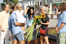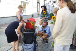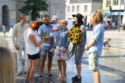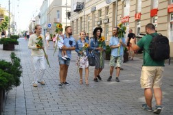 Artyści rozdawali przechodniom kwiaty. Spontaniczne spotkania z kielczanami miały wywołać nieco uśmiechu. Te sceny zostały zarejestrowane i trafią do teledysku. - To nasz pierwszy wideoklip nagrywany w Kielcach. Rozpoczynamy nim serię teledysków, w których pokażemy ciekawe miejsca w całej Polsce, fajnych, uśmiechniętych ludzi, codzienne życie, naszą ojczyznę - mówi wokalistka Małgorzata Babiarz, znana pod pseudonimem artystycznym Megitza.