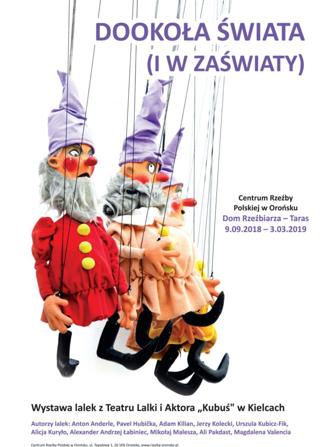 Ponad 120 lalek z 15 spektakli Teatru Lalki i Aktora "Kubuś" w Kielcach znalazło się na wystawie lalek teatralnych „Dookoła świata (i w zaświaty)”. Ekspozycja zostanie zaprezentowana w najbliższą niedzielę w Centrum Rzeźby Polskiej w Orońsku w województwie mazowieckim.