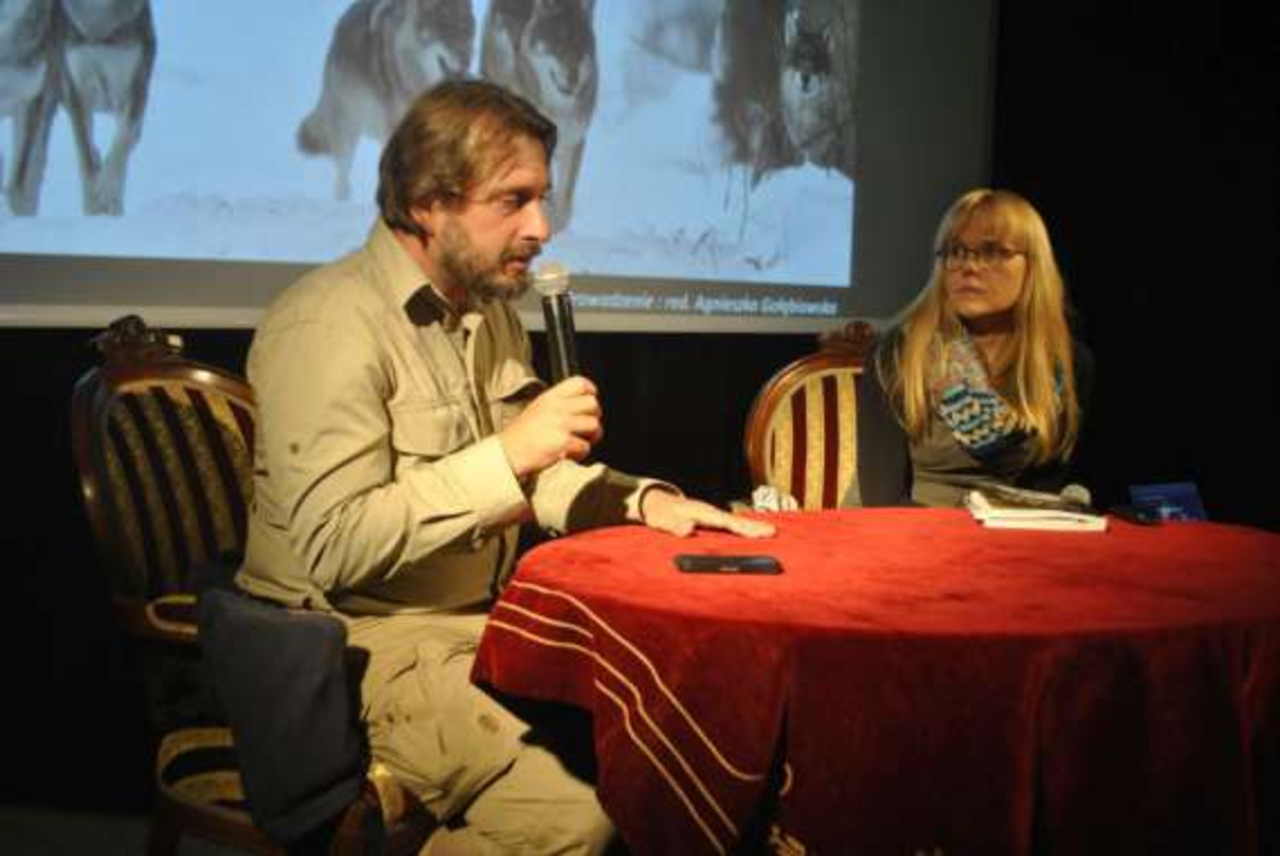 Autor obalał mity, jakie narosły przez lata wokół tych drapieżników. Mówił też między innymi o swoim pierwszym spotkaniu z wilkiem.
