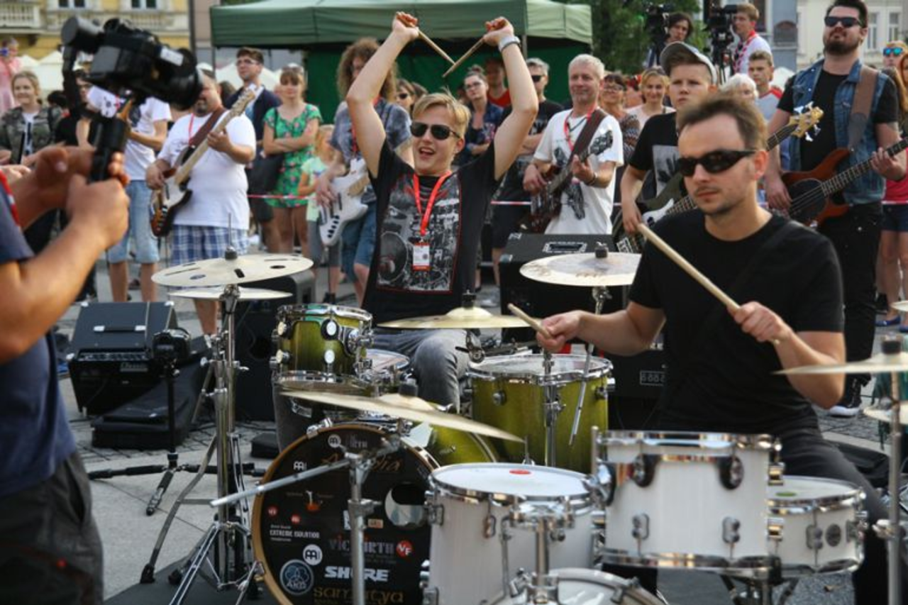 „Największy zespół rockowy” ponownie zagrał na kieleckim Rynku. Wokaliści, gitarzyści, perkusiści – w sumie około stu umuzykalnionych osób – zebrali się, by wspólnie wykonać dwie znane piosenki. Było to jedno z wielu wydarzeń, które odbywają się w ramach 44. Międzynarodowego Harcerskiego Festiwalu Kultury Młodzieży Szkolnej.