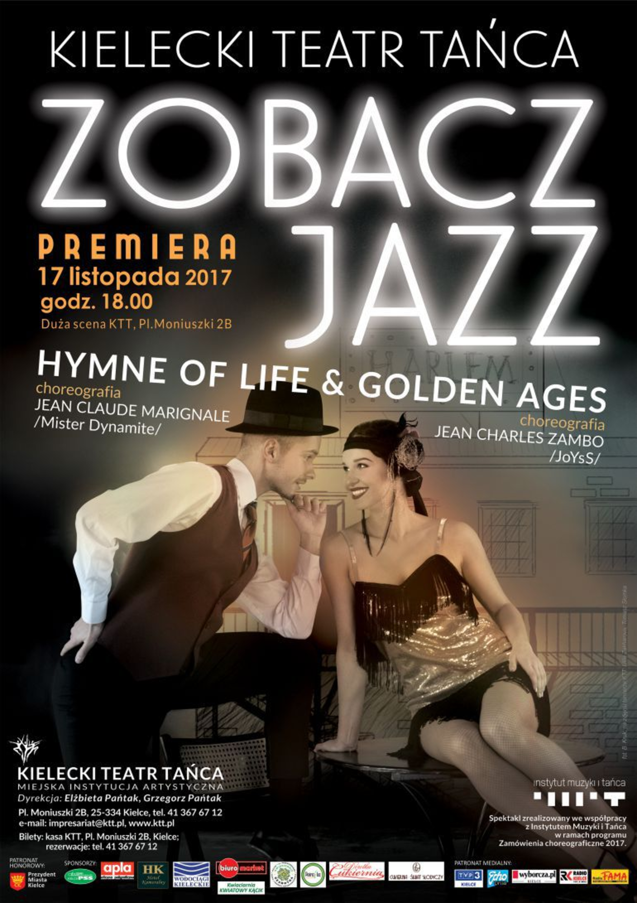 Widowisko w dwóch aktach przygotowuje Kielecki Teatr Tańca. W listopadzie artyści zaprezentują nowy spektakl pod tytułem „Zobacz jazz. Hymn of Life & Golden Ages”. Przybliży on widzom kulturę tańca jazzowego, który ma wiele odmian i ciekawą historię. - Chcemy też pokazać, że jazz jest to styl tańca, który jest nam bliski, kulturze słowiańskiej, bo jest bardzo energiczny, żywy. Jest tam także pierwiastek relacji damsko-męskich, przekomarzania się – mówi Elżbieta Pańtak, dyrektorka Kieleckiego Teatru Tańca.