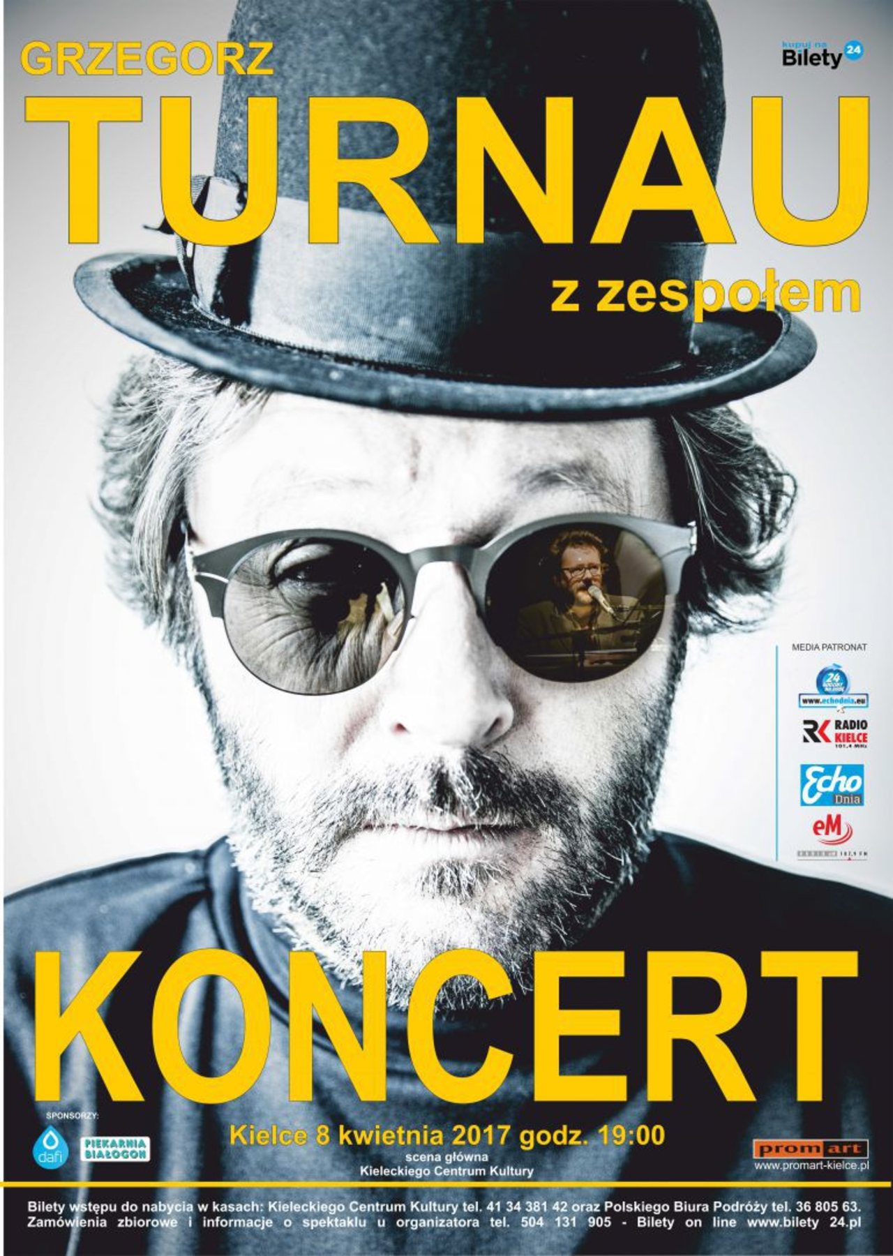 Bilety na koncert Grzegorza Turnaua z zespołem kupimy w Polskim Biurze Podróży przy ul. Sienkiewicza, w kasie Kieleckiego Centrum Kultury lub przez internet za pośrednictwem portalu bilety24.pl. Więcej informacji na temat imprezy udziela jej organizator firma PROM ART pod numerem telefonu 504 131 905.