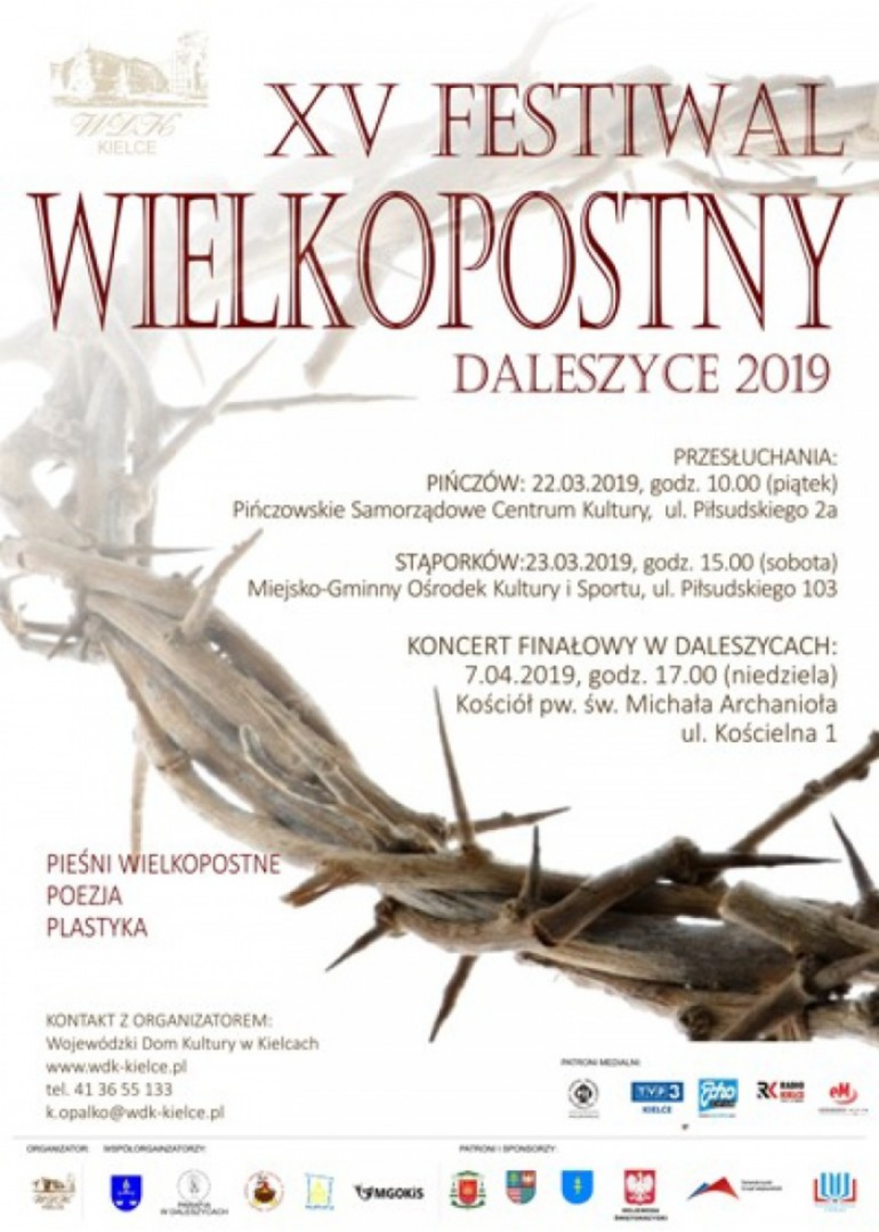 Rusza nabór zgłoszeń do udziału w piętnastym Festiwalu Wielkopostnym, który odbędzie się 7 kwietnia w Daleszycach. Oprócz koncertu tradycyjnych pieśni wielkopostnych, zaprezentowane zostaną także prace laureatów konkursu poetyckiego i plastycznego.