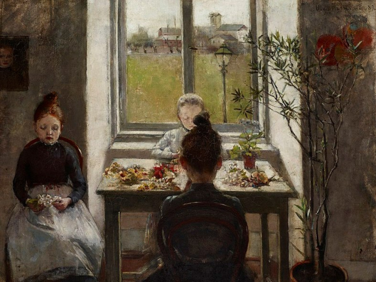 Pierwszą nauczycielką rysunku Olgi Boznańskiej była jej matka - Eugenia Mondan. Następnie pobierała lekcje u Jacka Wojciecha Siedleckiego i Kazimierza Pochwalskiego. Uczestniczyła także w Wyższych Kursach Artystycznych dla Kobiet Adriana Baranieckiego. Po wyjeździe z Krakowa kontynuowała naukę w Monachium u Karla Kricherdorfa i Wilhelma Dürra. Tam też założyła własną pracownię. Malowała martwe natury, pejzaże miejskie, sceny rodzajowe, jednak największą część jej twórczości stanowiły portrety, w tym portrety zadumanych, nazbyt jakby "dorosłych" dzieci.