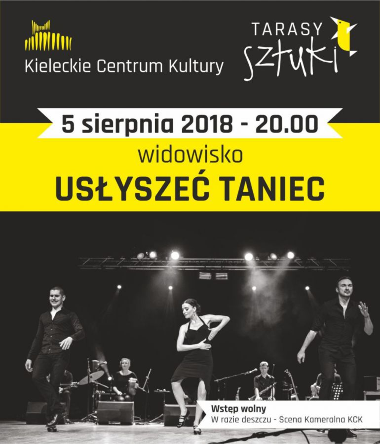"Usłyszeć taniec" to pierwszy w Polsce i jeden z nielicznych na świecie projektów łączących flamenco, muzykę irlandzką i jazz. Ten mix ekspresyjnego tańca z muzyką porywającą i kojącą jednocześnie stanowi wyśmienitą ucztę dla ucha. Podczas pokazu pojawią się takie formy jak flamenco, step irlandzki, amerykański, taniec jazzowy oraz muzyka etno jazzowa grana na żywo.