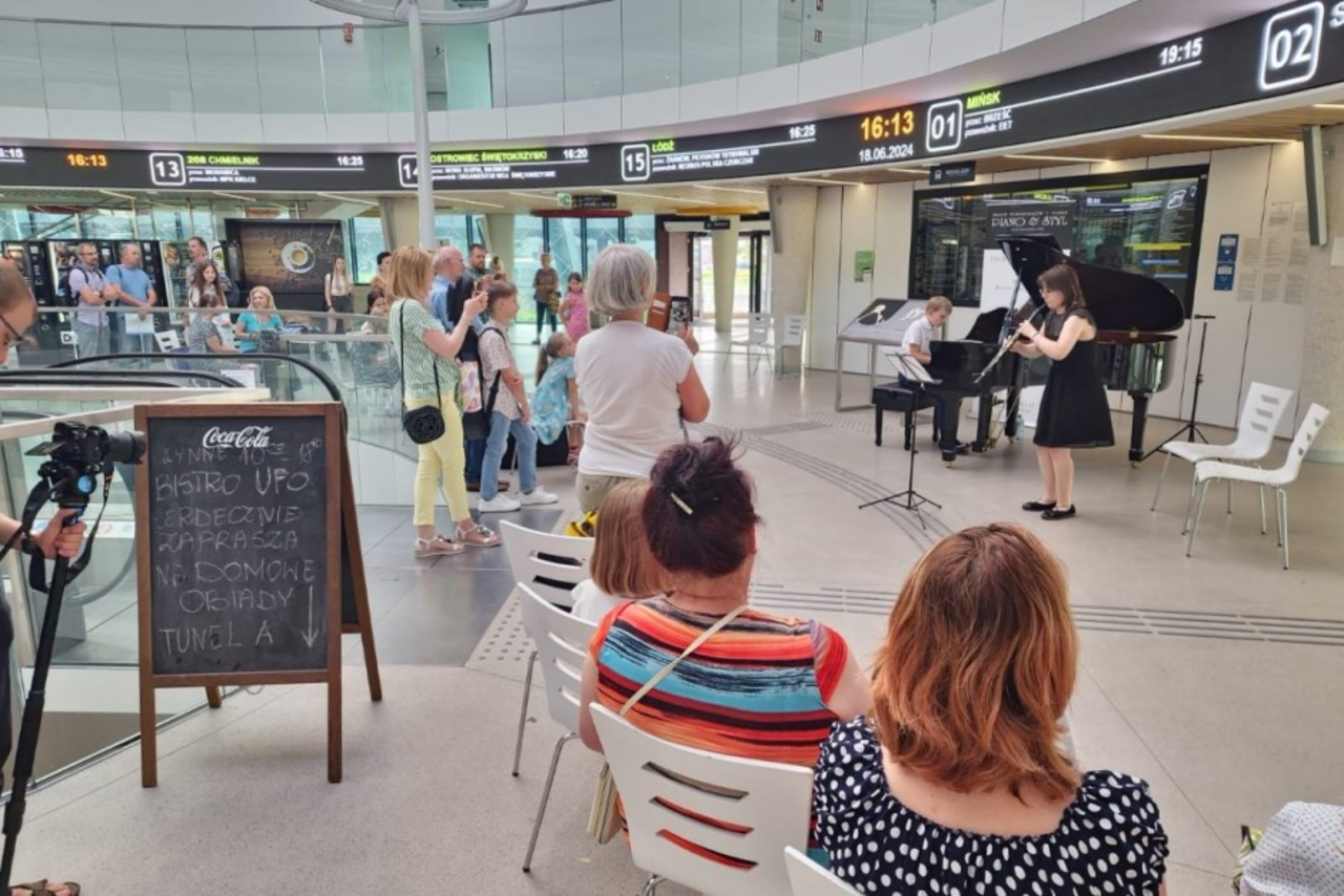Przed publicznością złożoną z pasażerów zagrali młodzi muzycy z Zespołu Szkół Muzycznych w Kielcach. Wśród nich była 14-letnia Maja Górecka, która gra na oboju.