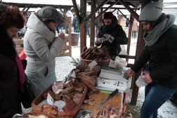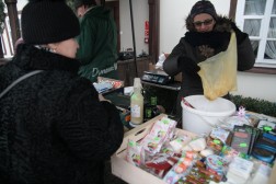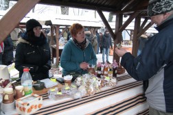 Podczas kiermaszu przy dworku Laszczyków mogliśmy kupić różnego rodzaju wędliny, kiszonki, sery, pierogi, czyli wszystko co zazwyczaj podajemy na świątecznym stole. Wśród wystawionych towarów znalazły się także miody pitne oraz susze owocowe, z których można przyrządzić wyśmienity wigilijny kompot.