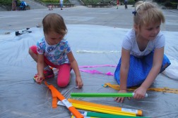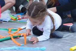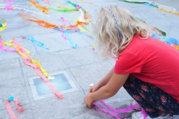 Latający dywan powstał na bazie sporej płachty folii. Została ona przyozdobiona różnymi elementami. - To kompletny misz-masz estetyczny. Uczestnicy zabawy mieli całkowitą wolność w zdobieniu dywanu. Używali bibuły oraz naklejek – mówi Przemysław Żmiejko. To był drugi happening organizowany przez artystów z ulicy Dużej. Tydzień wcześniej przygotowany został symboliczny domek na drzewie, który nadal można oglądać przy Placu Artystów.