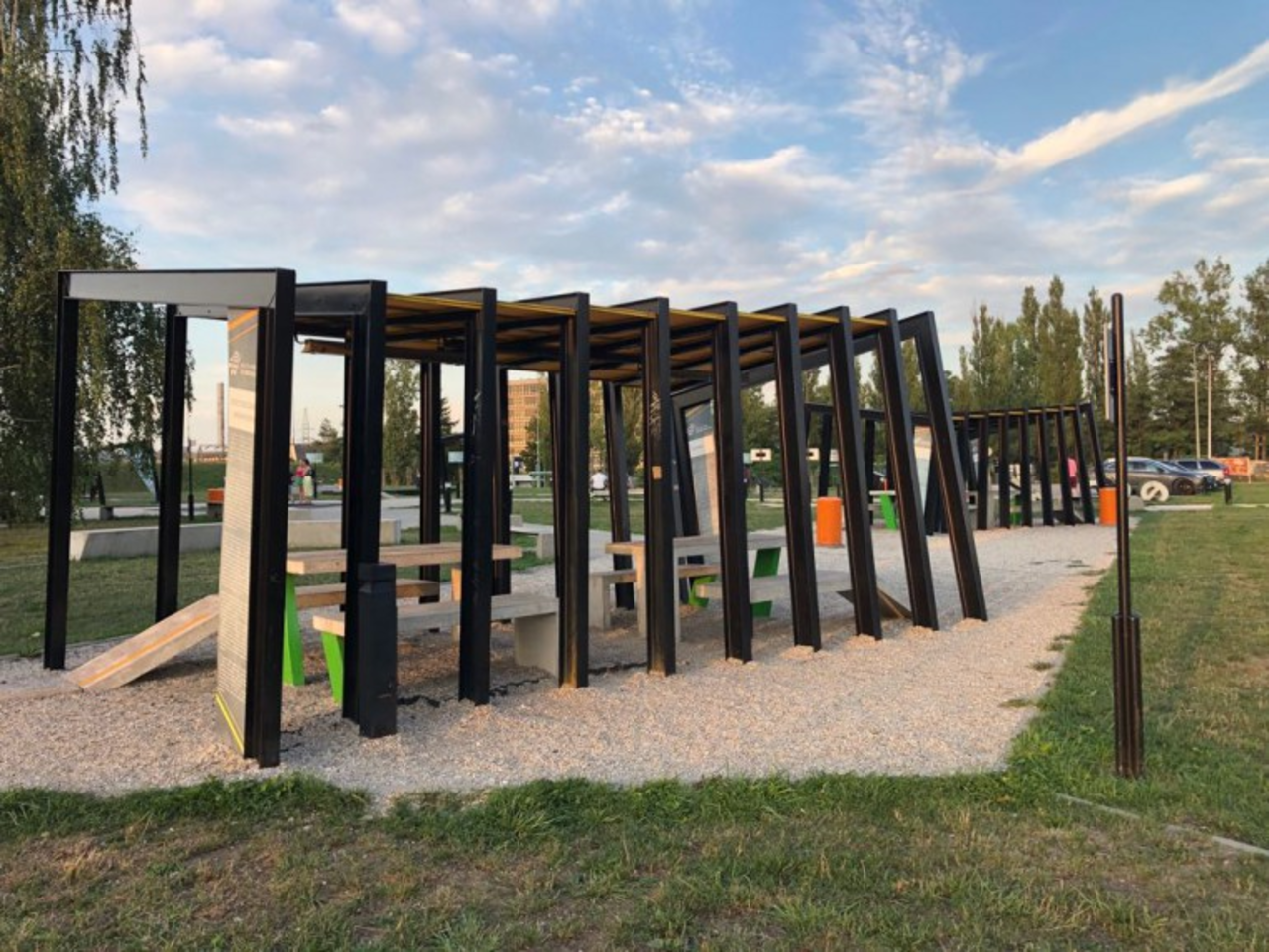 Podobnie jest w Parku Dygasińskiego, gdzie również musimy przyjść z własny drewnem lub węglem. W tym przypadku rezerwacja nie jest wymagana, a korzystanie jest bezpłatne. Do dyspozycji mamy dwie wiaty grillowe ze stołami z ławkami, a do tego piłkarzyki i stolik szachowy.