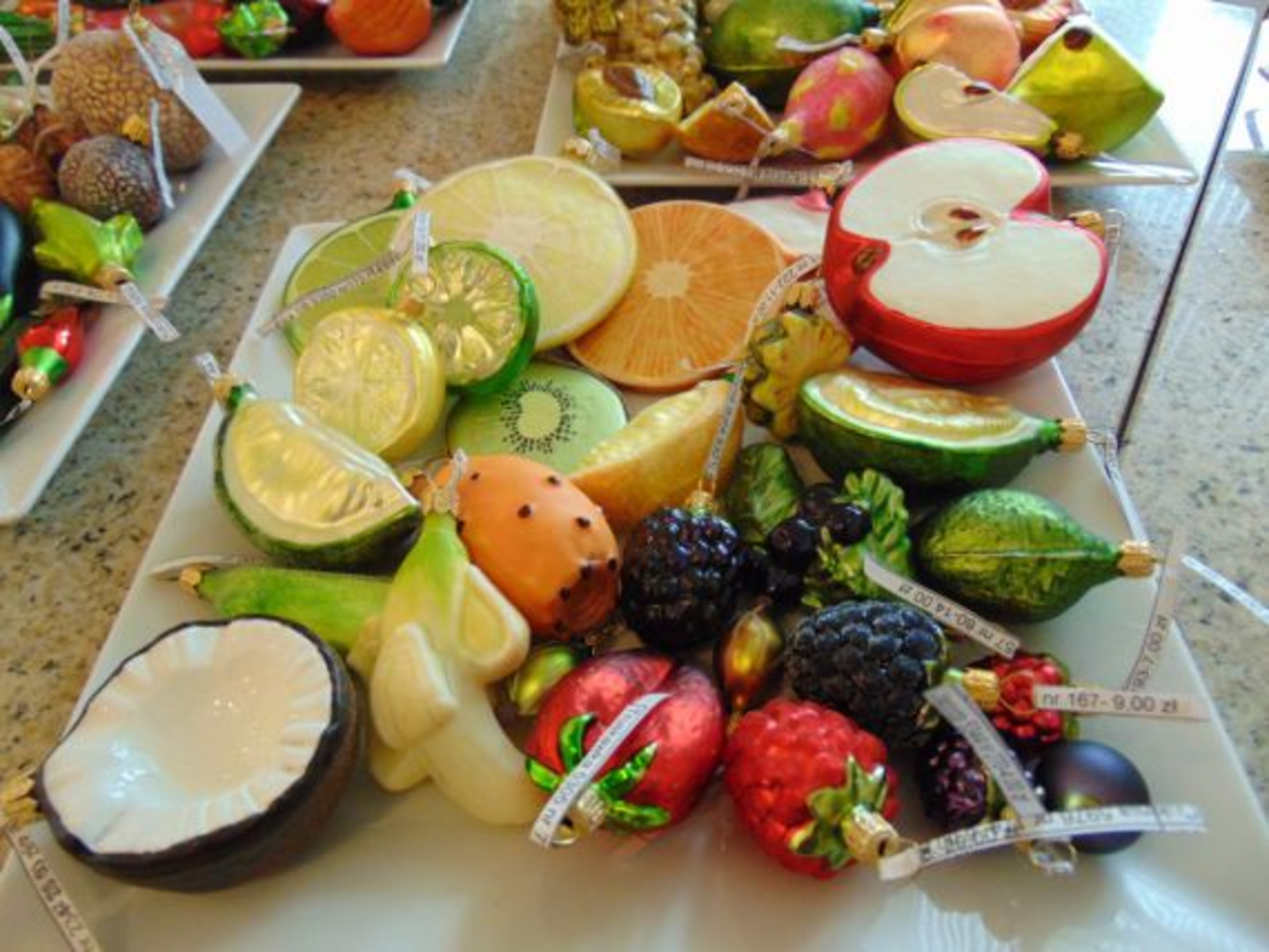 Miniaturowe psy, żaby, ryby czy ptaki, a także szklane owoce i warzywa, które dzięki intensywnym barwom i starannym wykonaniem przypominają prawdziwe, świeże produkty spożywcze . Takie bombki to propozycja Lucyny Gozdek, artystki ze Staszowa. Można je nabyć w Biurze Wystaw Artystycznych w Kielcach.