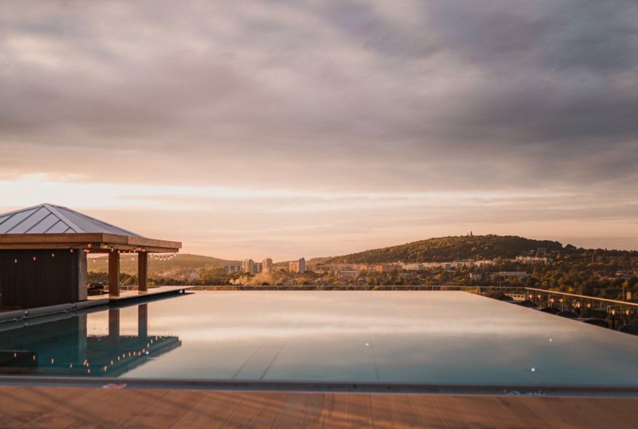 Basen na dachu to strefa wypoczynkowa z leżakami, jacuzzi oraz barem z widokiem na Góry Świętokrzyskie. Nie brakuje również strefy gastronomicznej, a dokładniej japońskiej restauracji, w której można zdegustować sushi oraz ramen.