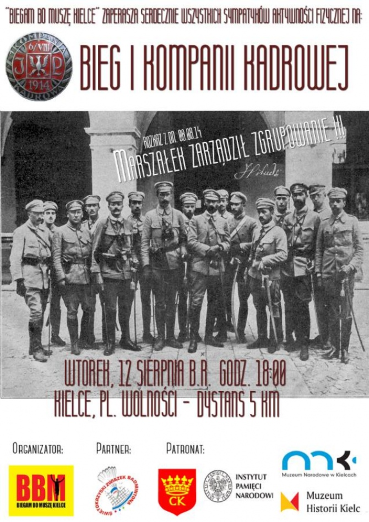 Zgodnie z rozkazem wydanym przez Marszałka Józefa Piłsudskiego w dniu 12 sierpnia o godzinie 18 na kieleckim placu Wolności odbędzie się zgrupowanie biegaczy i osób aktywnych fizycznie. W ramach zgrupowania odbędzie się bieg na dystansie 5 km.
