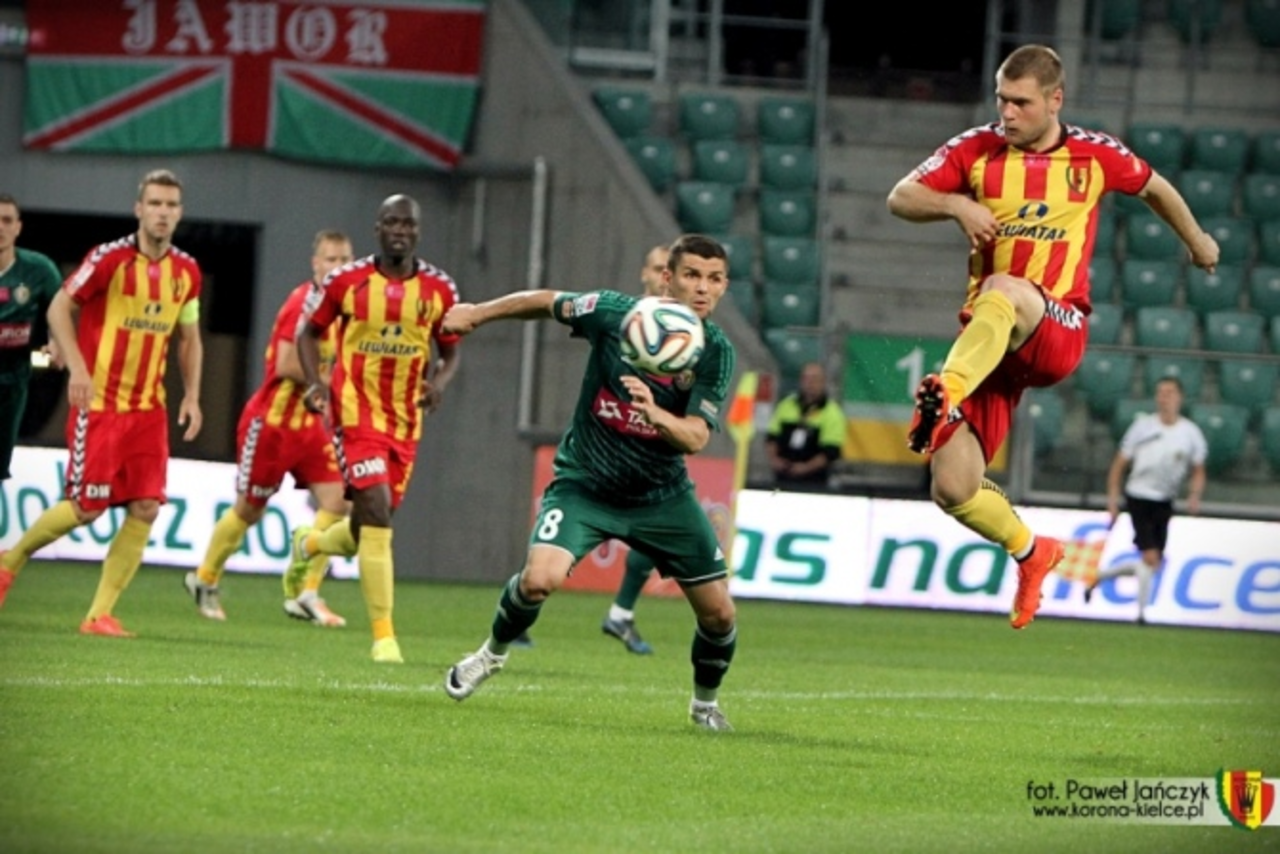 Zarówno jedni jak i drudzy nie rozpoczęli potyczki od huraganowych ataków. Podopieczni Ryszarda Tarasiewicza egzekwowali jednak sporo rzutów rożnych, a gospodarze starali się odgryzać kontrami. W końcówce pierwszej połowy miały miejsce dwie dyskusyjne decyzje arbitra Pawła Gila. W obu przypadkach Przemysław Trytko upadał w polu karnym, ale gwizdek sędziego milczał. Jak wykazały powtórki telewizyjne, co najmniej jedna „jedenastka” należała się piłkarzom z Kielc.
