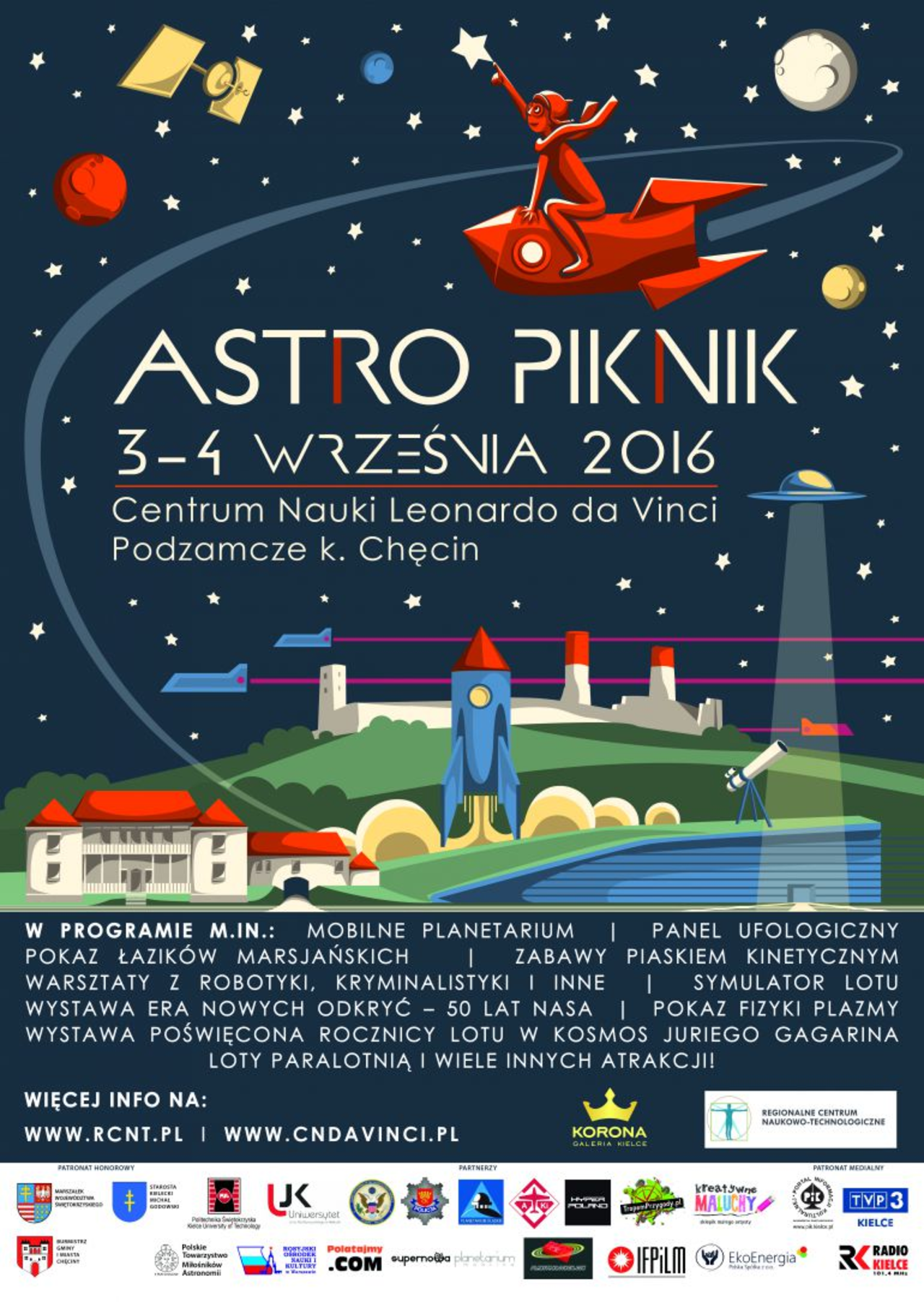 Dla najmłodszych przygotowano warsztaty z robotyki, a dla lubiących ekstremalne wrażenia przelot motoparalotnią. Astro Piknik to spadkobierca odbywających się w poprzednich latach w Podzamczu zawodów łazików marsjańskich, dlatego nie zabraknie tych skomplikowanych maszyn. Zaprezentują je konstruktorzy z Politechniki Świętokrzyskiej.
