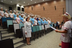 Podczas uroczystości absolwenci złożyli ślubowanie i odśpiewali hymn pielęgniarski, a na koniec wręczone zostały nagrody dla pielęgniarek i położnych, które ukończyły studia z wyróżnieniem.