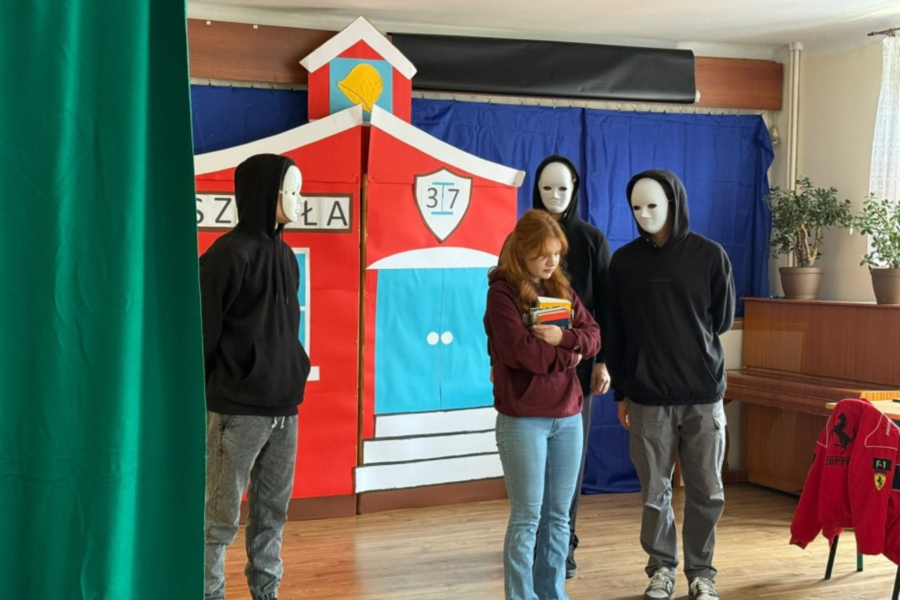 Warsztaty poprzedził pokaz spektaklu „Cisza krzyczy głośniej” w wykonaniu młodzieżowej grupy teatralnej Cooltura, działającej w Bursie Szkolnej nr 2. Przedstawienie dotyczyło omawianego tematu przemocy rówieśniczej. Młodzi aktorzy – Maja i Karol – podkreślają, że sami nigdy nie doświadczyli tego rodzaju zjawisk, ale oceniają, że przemoc rówieśnicza jest niestety częstym problemem. Jak zaznaczają, przyjmuje ona różne formy – od wyzywania i hejtu w sieci po przemoc fizyczną i psychiczną. Wspominają również o swoim zaangażowaniu w kółko teatralne, gdzie poprzez sztukę poruszają trudne tematy.