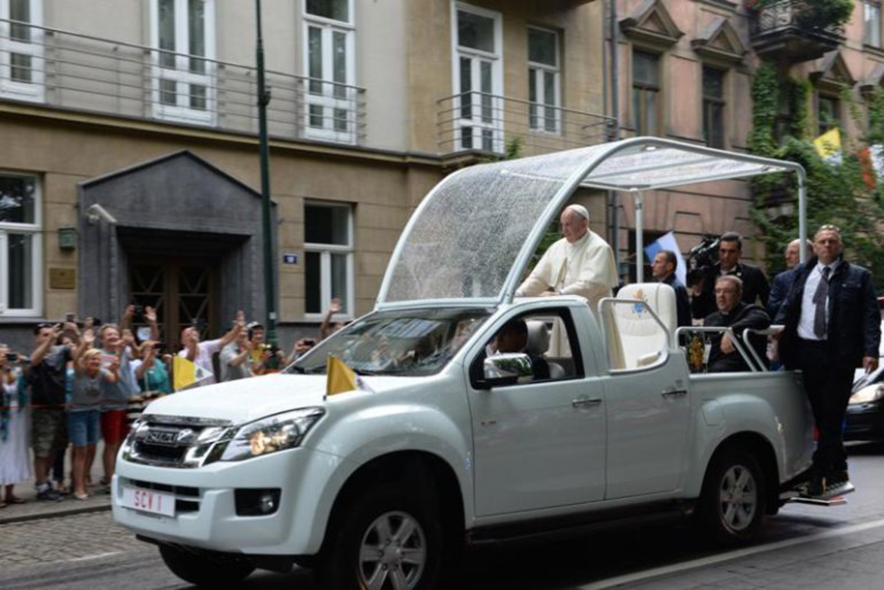 Modlitwa w Sanktuarium Miłosierdzia Bożego w Łagiewnikach, Msza święta z kapłanami w Sanktuarium św. Jana Pawła II, obiad z przedstawicielami młodzieży ze wszystkich kontynentów oraz czuwanie na Campus Misericordiae w Brzegach - to sobotni dzień wizyty papieża Franciszka w Polsce.
